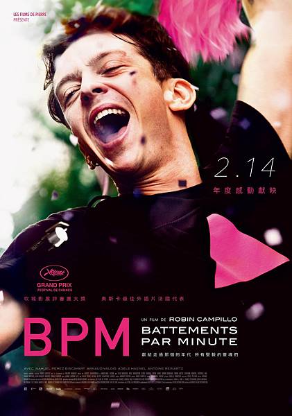 2018 奧斯卡最佳外語片法國代表|2017 坎城影展評審團大獎、酷兒金棕櫚獎、影評人費比西獎|紐約、洛杉磯、舊金山、溫哥華影評人協會最佳外語片-《BPM》。