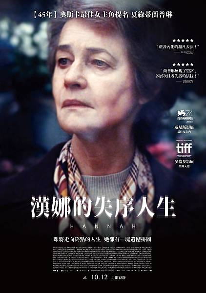 2017 威尼斯正式競賽片、多倫多影展正式入選|2017 威尼斯影展最佳女演員、最佳化妝師|權威影評爛番茄網站90%超高好評力薦-《漢娜的失序人生》。